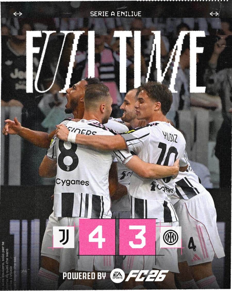 Голевая фееррия на «Альянц Стэдиум» закончилась победой «Ювентуса» со счётом 4 - 3. В составе «старой синьоры» отличились: Келли, Йылдыз, Тюрам и Аджич