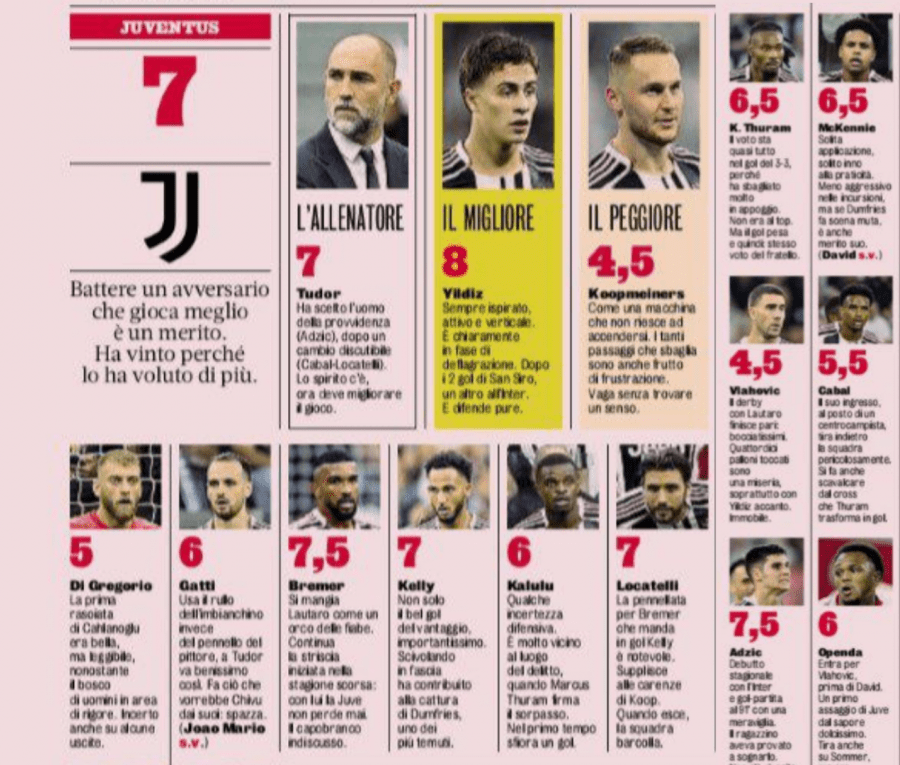 Оценки от GdS за «Дерби Д'Италия»