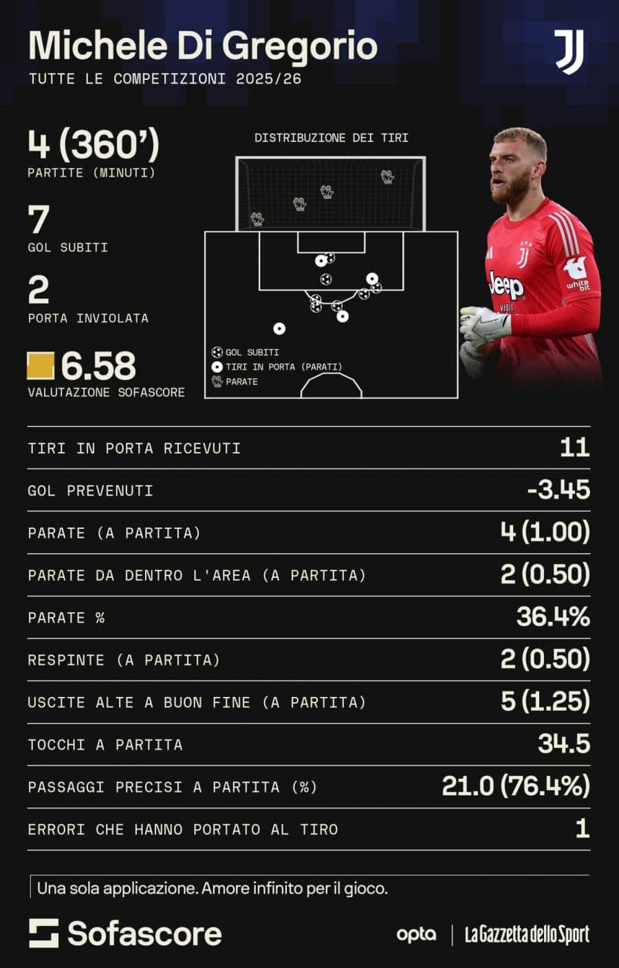 Многие болельщики уже задаются прямым вопросом: «А нужен ли нам новый вратарь?». Повод для тревоги очевиден — в последних двух матчах, против «Интера» и «Боруссии» Дортмунд, Ди Грегорио пропустил семь мячей. И все указывают именно на него — голкипера, за которого летом 2024-го «Юве» заплатил около 20 млн евро (включая аренду, обязательный выкуп и бонусы) и который получает зарплату в 2 млн за сезон. Когда критика становится персональной, начинают внимательно разбирать каждую ошибку.