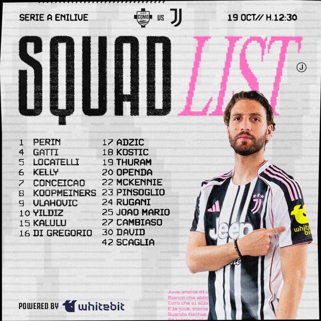 Главный тренер «Ювентуса» Игор Тудор назвал список игроков вызванных на матч против «Комо»