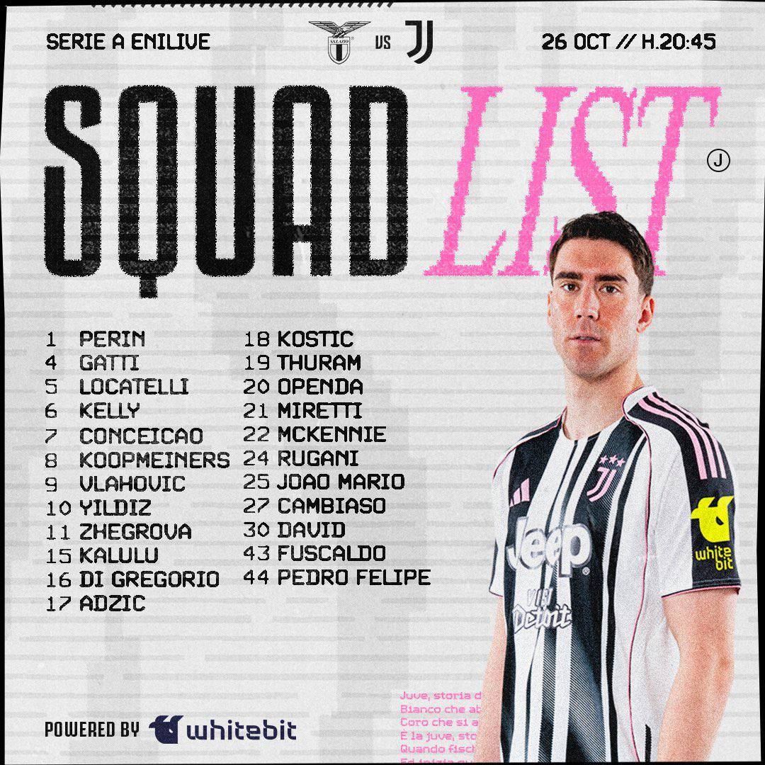 Главный тренер «Ювентуса» Игор Тудор назвал список игроков вызванных на матч против «Лацио»